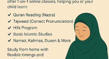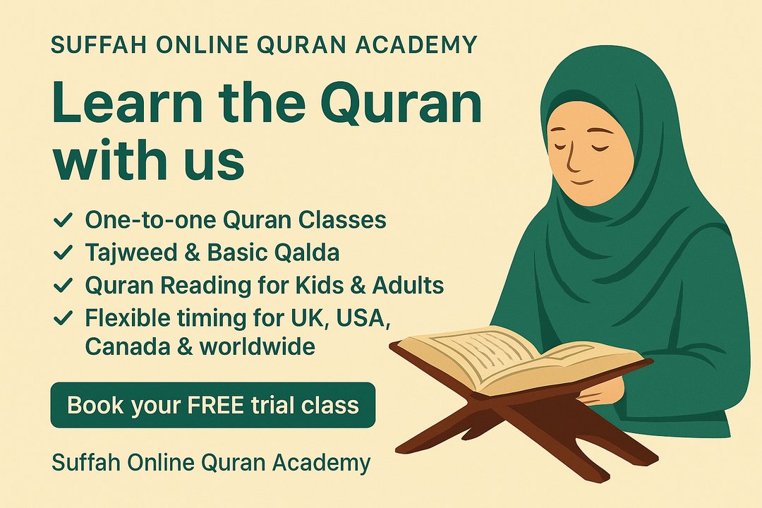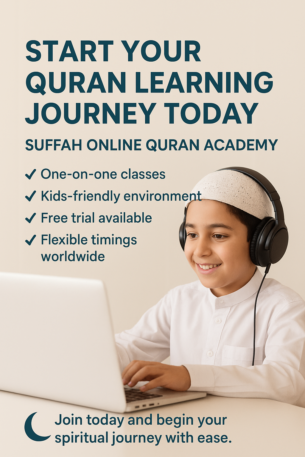 Suffah Online Quran Academy provides one-on-one online Quran classes for students of all ages. Our qualified male and female tutors teach Quran reading, Tajweed, Hifz (memorization), and Islamic studies through live sessions. We focus on providing flexible, interactive, and reliable online Quran learning for kids and adults worldwide. Students can schedule classes according to their time zone and learn from home with experienced teachers dedicated to authentic Quran education. Suffah Online Quran Academy is committed to helping every student connect with the Holy Quran easily and effectively through trusted online learning methods.